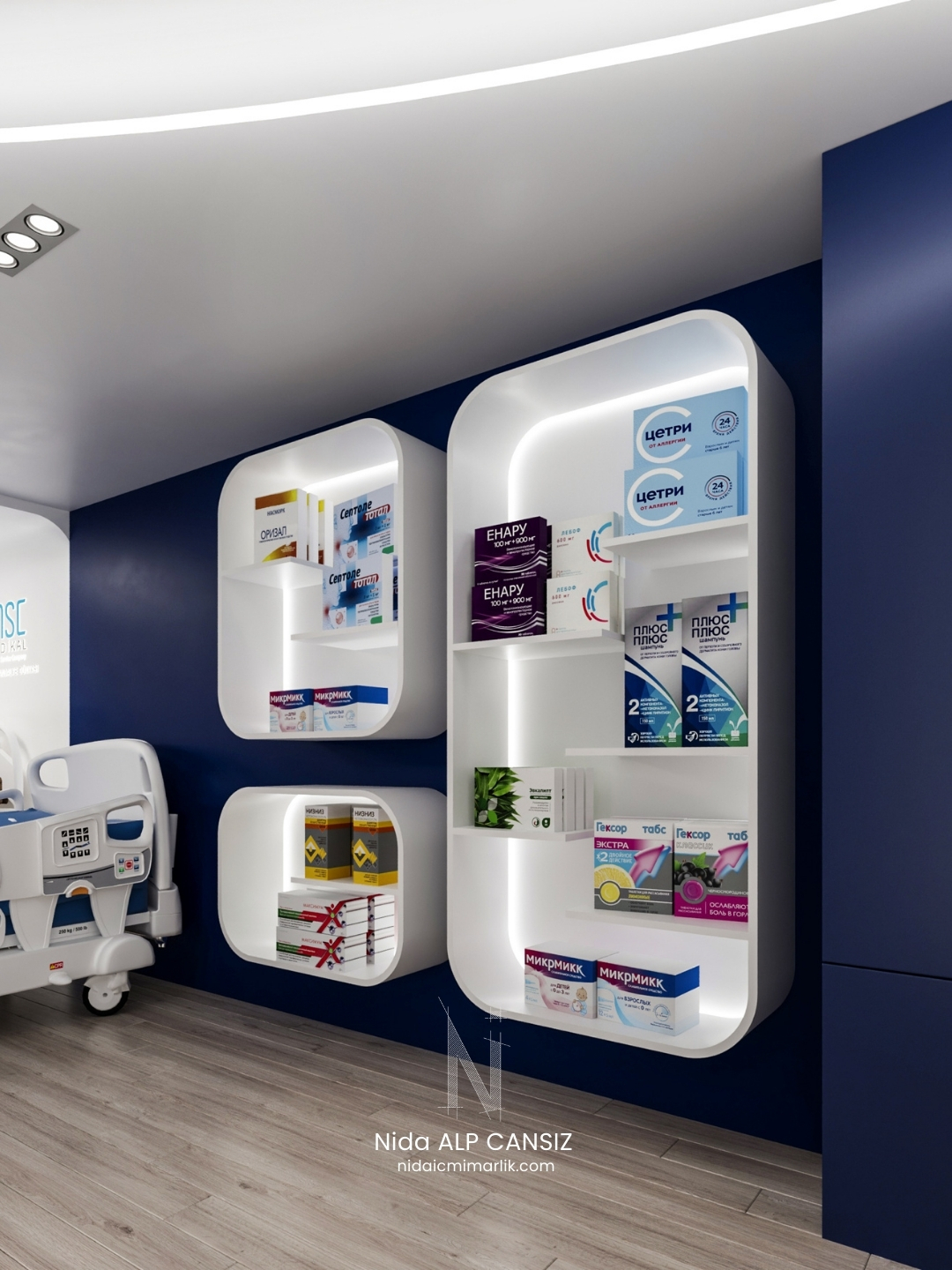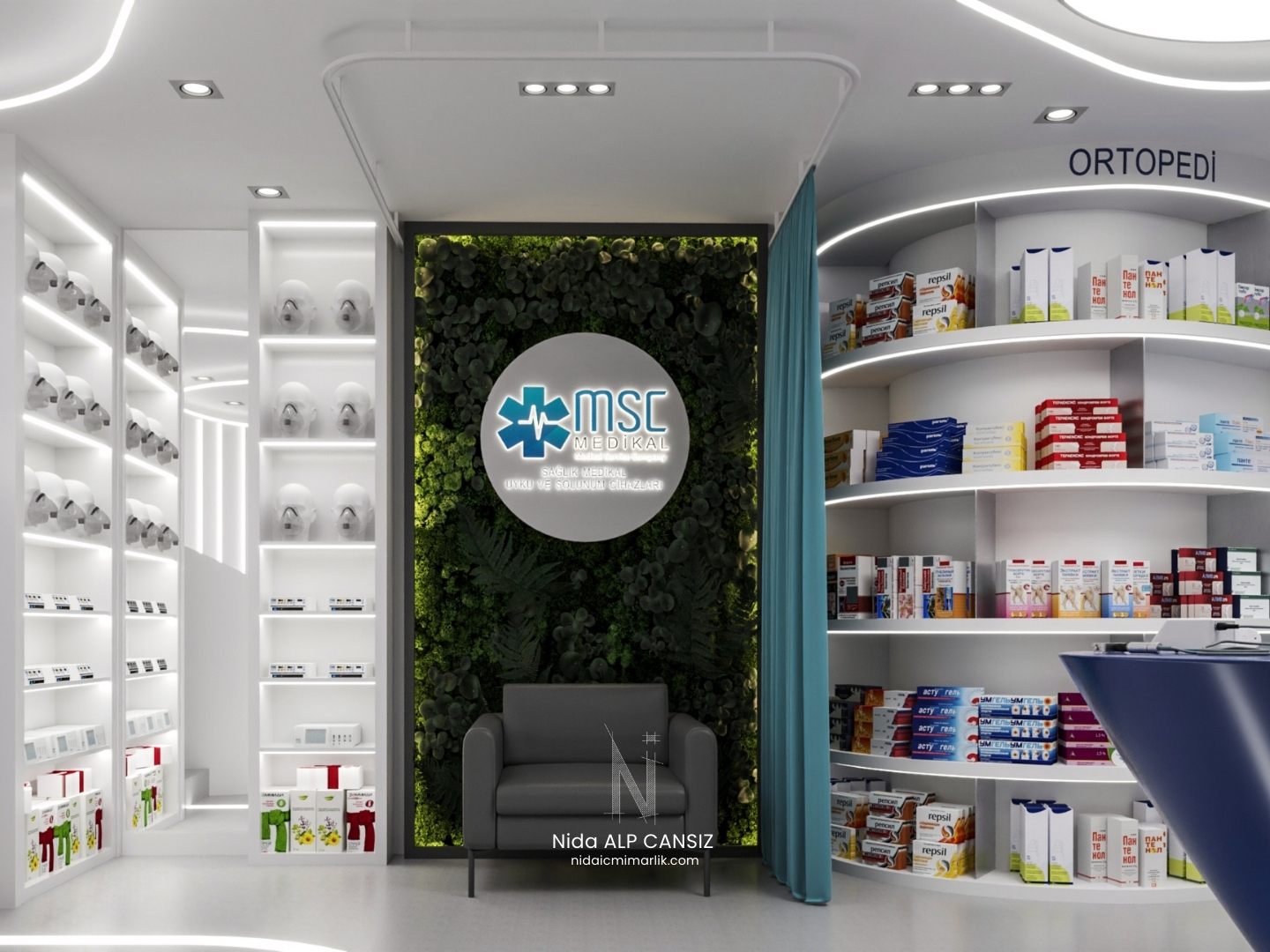 Medikal mağaza ve sağlık sektörüne yönelik iç mimari projelerde, fonksiyon ile estetik arasındaki dengeyi kuran çözümler üretmeyi önemsiyoruz. Bu proje, bu yaklaşımın mekâna yansımış bir örneğidir.