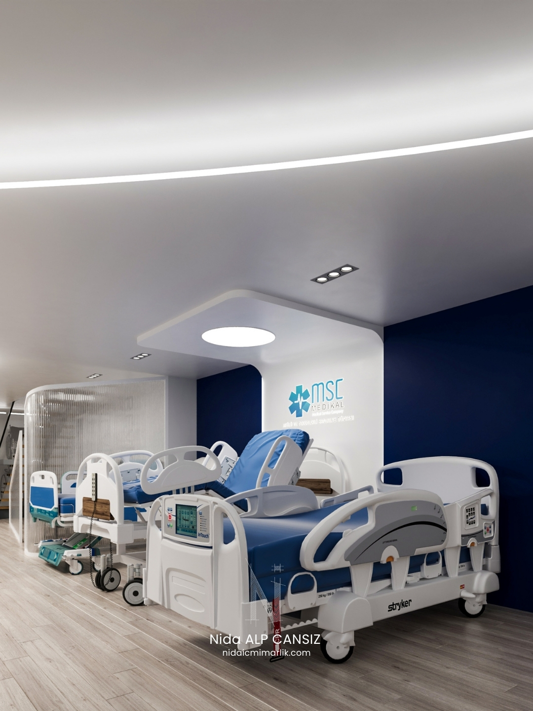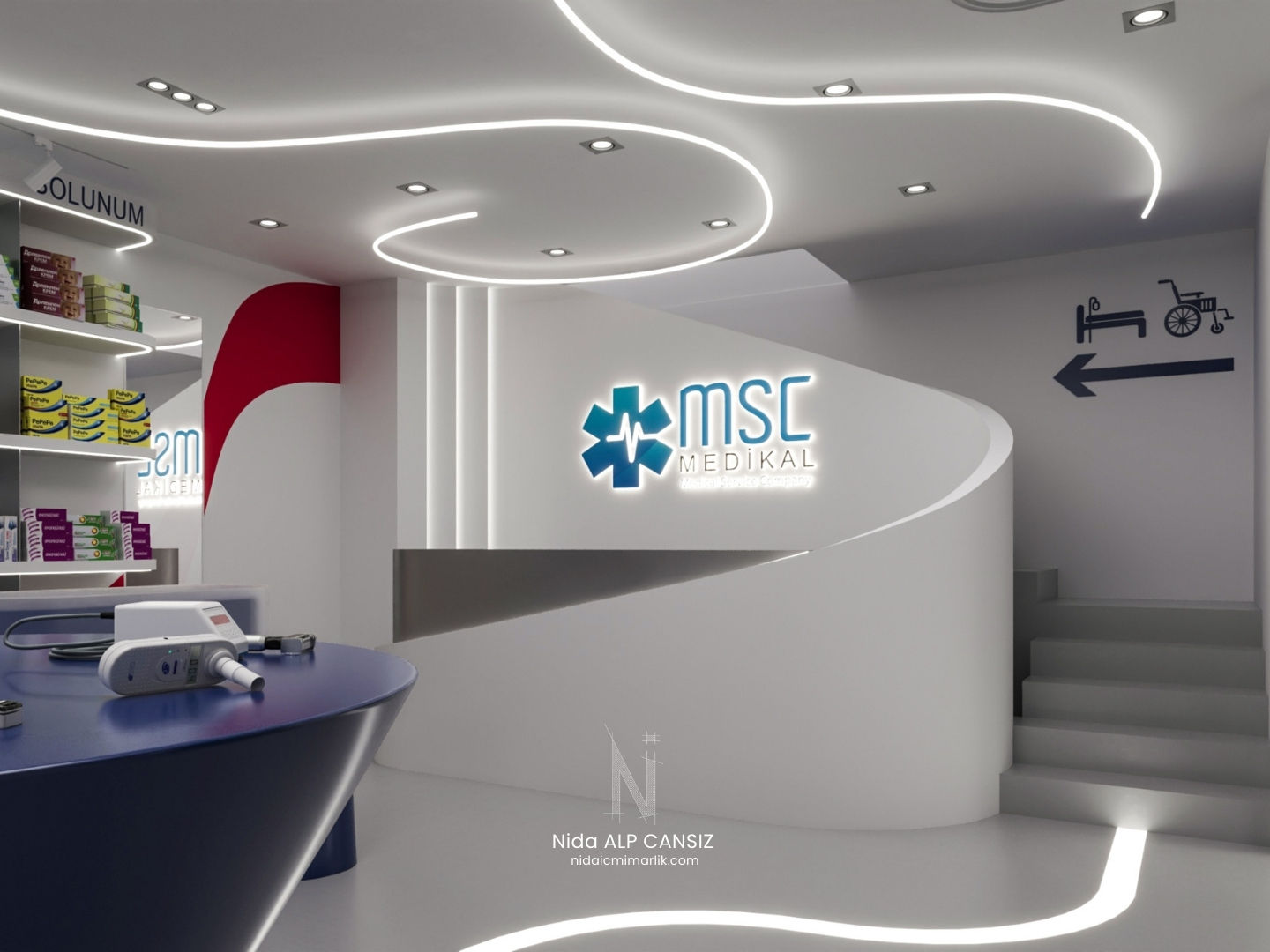 MSC Medikal için tasarlanan bu proje, sağlık sektörünün gerektirdiği düzen, hijyen ve erişilebilirlik kriterlerini modern ve güçlü bir mekân diliyle bir araya getirme hedefiyle ele alındı. Medikal mağaza ve showroom alanı, yalnızca ürün sergilemek için değil, kullanıcıya güven veren ve rahat bir deneyim sunan bir mekân olarak kurgulandı.